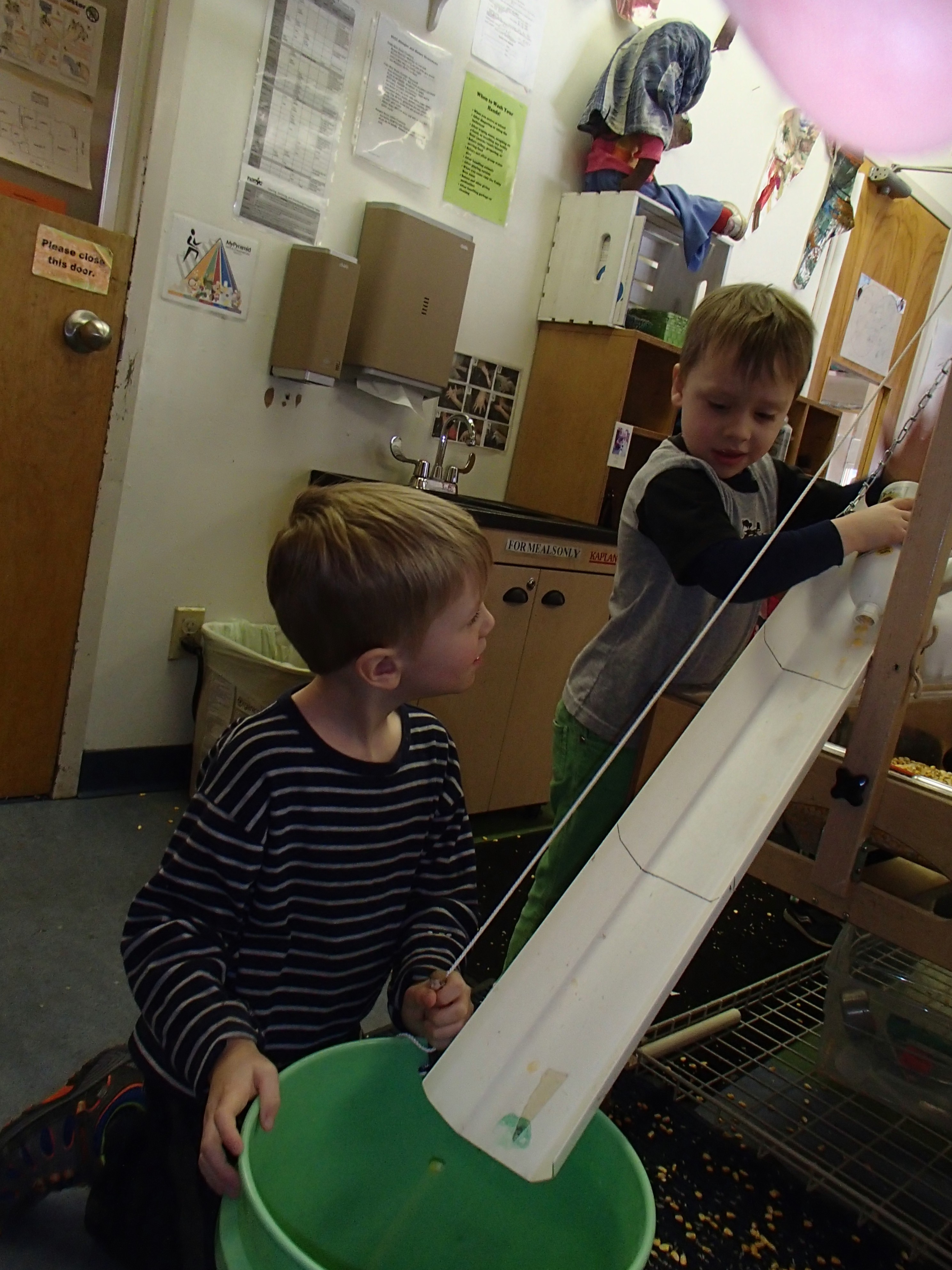 If a new child joined our class, I would have to help them join other children who were playing. I find that the most successful way of joining others is not to ask, “Can I play, too?” The first step is non-verbal. The child needs to play with similar materials. If a child is drawing, draw near them. If they are building with blocks, build near them. They also have to position themselves in the same way as the child they want to play with. If the child is sitting on the floor, the other child should sit on the floor. If the child is sitting at a table, the child sits at the table. If the play involves movement, the child entering play needs to move as well.