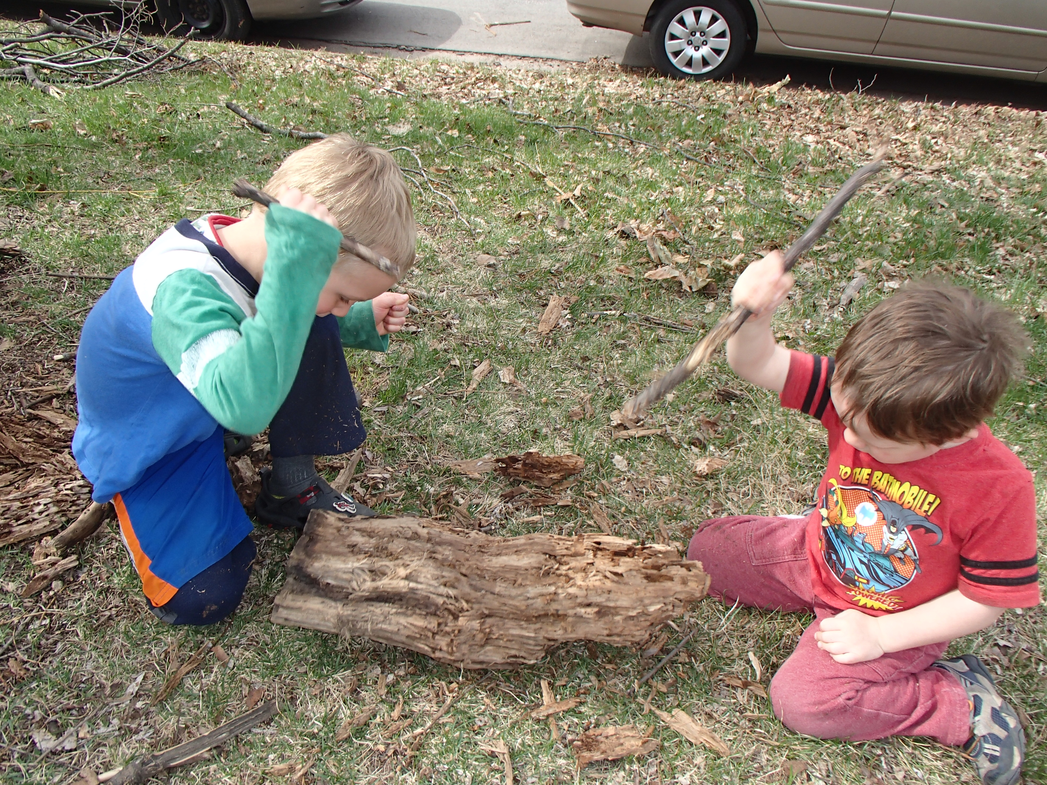 He spent the rest of our outside time trying to break the ice chunks. He tried throwing them against stumps, tree trunks and the ground. He tried hitting them with sticks and shovels. I hate to admit that my first reaction was to tell him not to break them. But I held my tongue and watched.