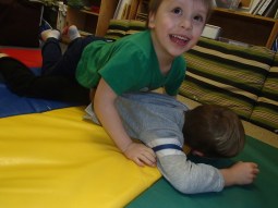 Some teachers will stop children if they play rough so they don’t hurt each other. I think this is a missed opportunity for children how to learn to respect each other. If two children want to roughhouse, they are taking care of each other when they roughhouse, meeting the need they have for physical play. However, if one child wants to play rough and tackles a child without asking, that is clearly not OK. That child is not taking care of the other child. The child must ask first.